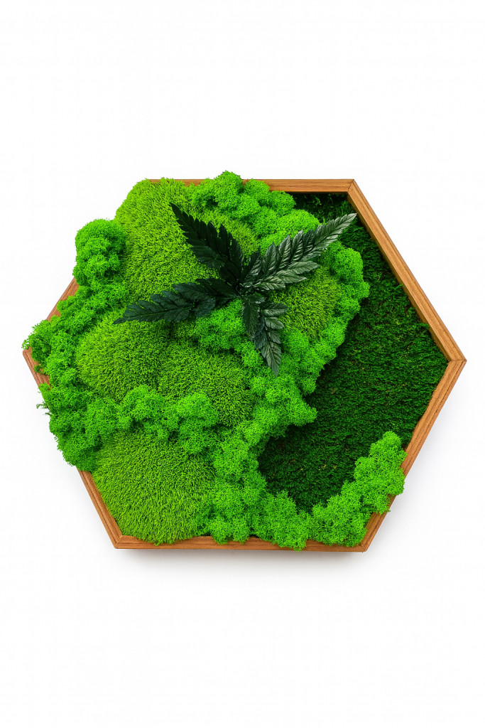 "Moha szimfónia" - Hatszögletű mohakép 40 cm