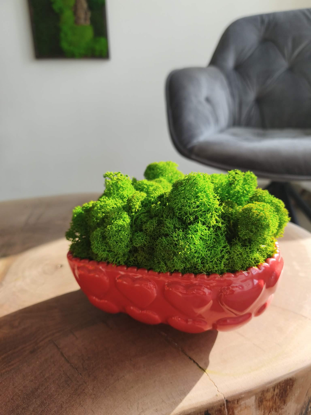 • ha szárazabb a levegő a helyiségben, ahol a moha-zuzmókép van, akkor előfordulhat, hogy a növények megkeményednek, elveszítik puhaságukat, de a jó hír, hogy, amint optimális tartományba kerül a páratartalom, úgy a növény is vissza fog puhulni!!!