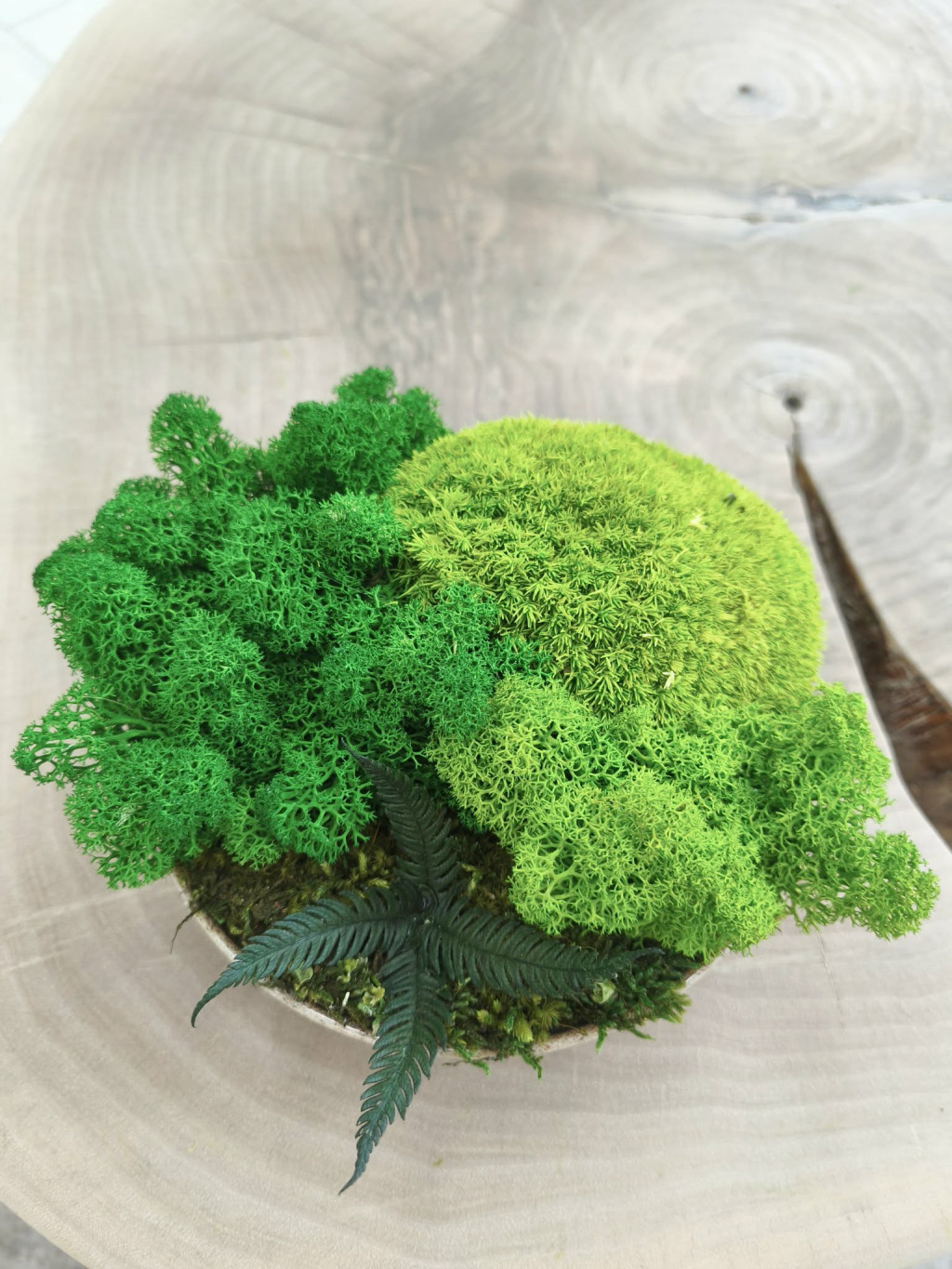 • ha szárazabb a levegő a helyiségben, ahol a moha-zuzmókép van, akkor előfordulhat, hogy a növények megkeményednek, elveszítik puhaságukat, de a jó hír, hogy, amint optimális tartományba kerül a páratartalom, úgy a növény is vissza fog puhulni!!!