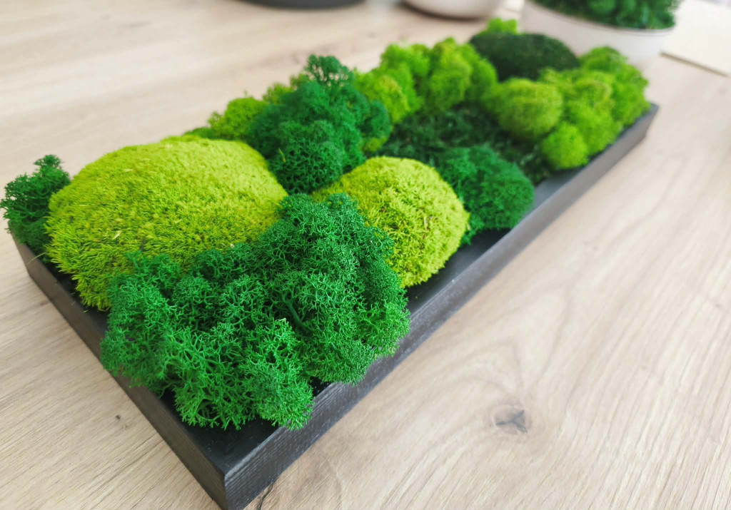 • ha szárazabb a levegő a helyiségben, ahol a moha-zuzmókép van, akkor előfordulhat, hogy a növények megkeményednek, elveszítik puhaságukat, de a jó hír, hogy, amint optimális tartományba kerül a páratartalom, úgy a növény is vissza fog puhulni!!!