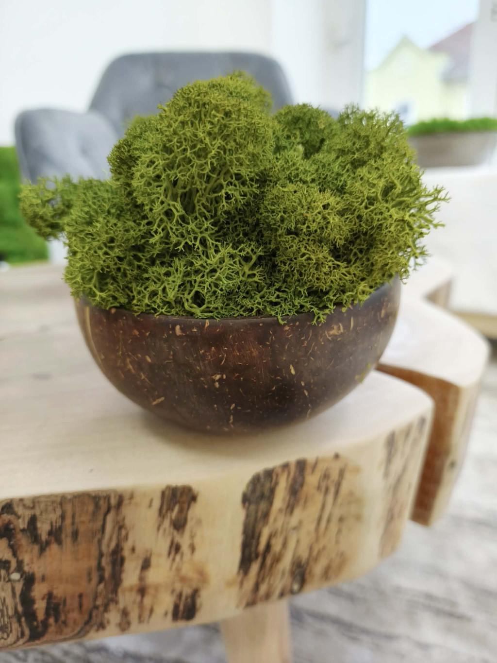 "Zuzmóöböl" - kókuszdió tálban közepes zöld zuzmó
