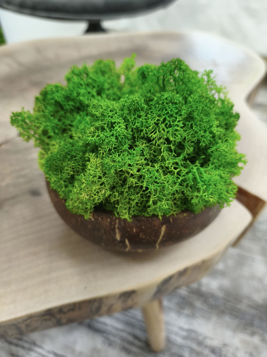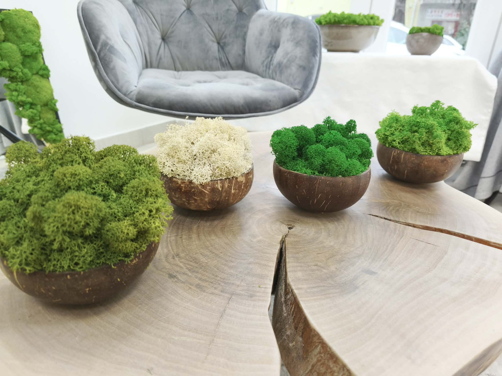 "Zuzmóöböl" - kókuszdió tálban vil. zöld zuzmó