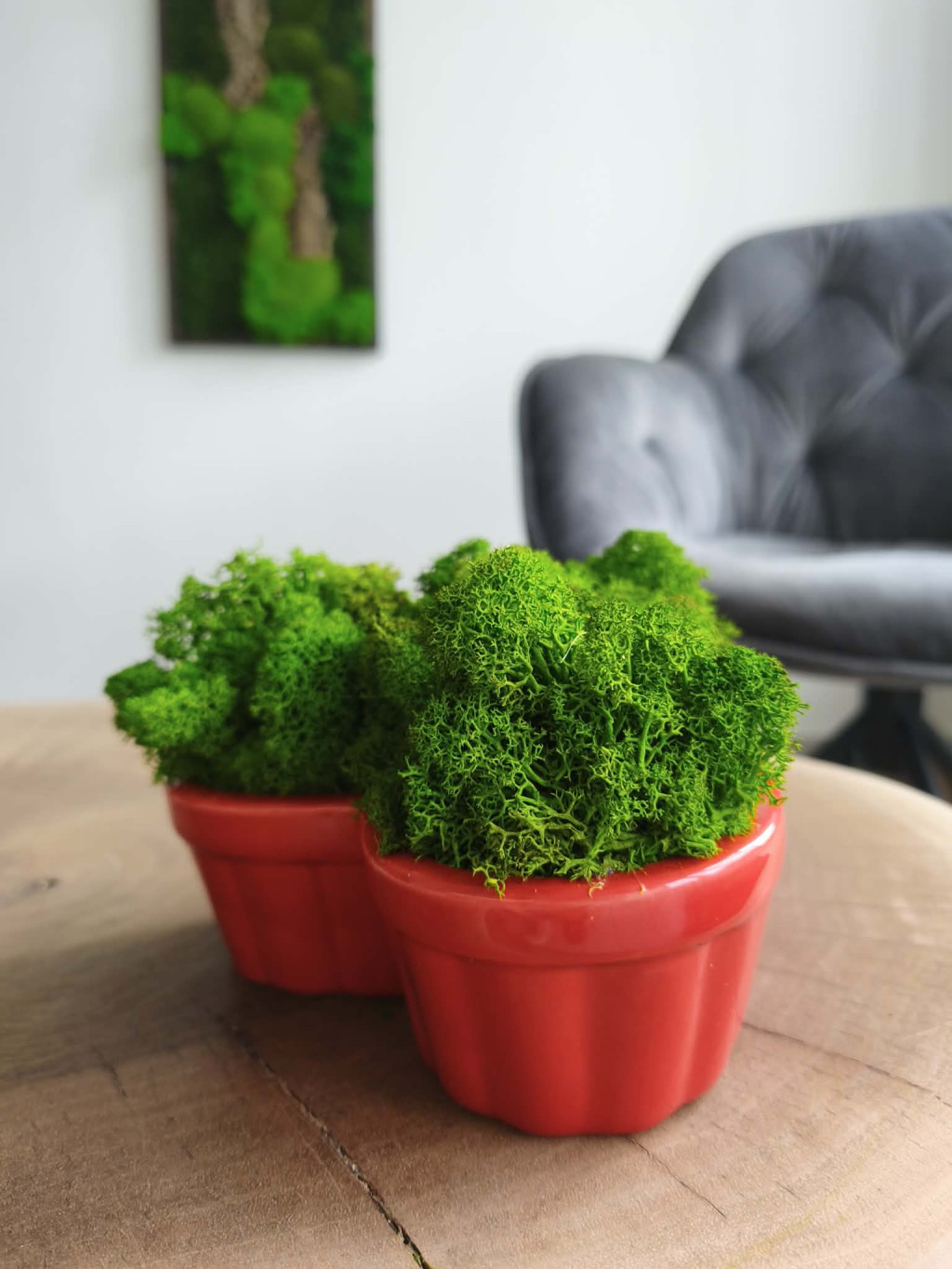 • ha szárazabb a levegő a helyiségben, ahol a moha-zuzmókép van, akkor előfordulhat, hogy a növények megkeményednek, elveszítik puhaságukat, de a jó hír, hogy, amint optimális tartományba kerül a páratartalom, úgy a növény is vissza fog puhulni!!!